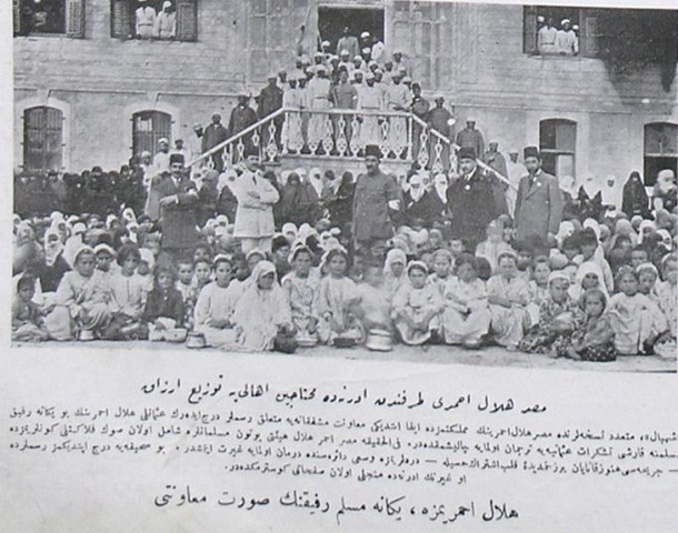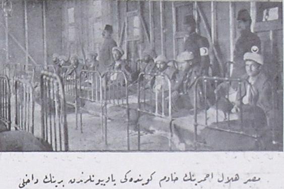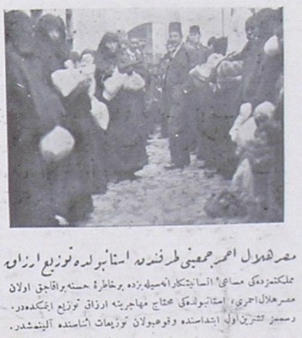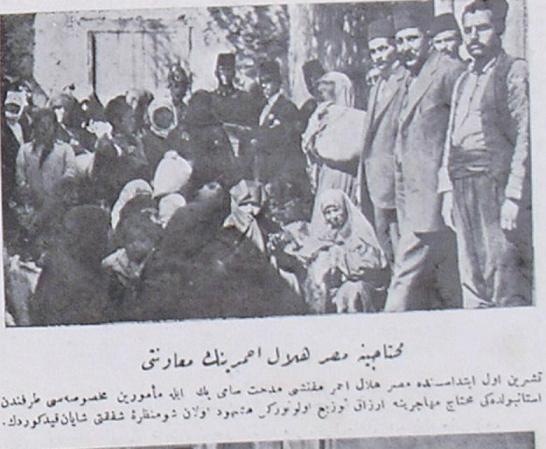 يظهر في الصورة توزيع الهلال الأحمر المصري للمواد الغذائية أمام المستشفى على المحتاجين في أدرنه. وقد كتبت العبارة التالية أسفل الصورة:” تم إدراج الصور المتعلقة بالمعونات الإنسانية التي قدمها الهلال الأحمر المصري في بلدنا، في محاولة لتكون ترجمانا للشكر العثماني الذي يتقدم به الهلال الأحمر العثماني لرفيقه الوحيد المسلم. إن هذه الصور الملتقطة للهلال الأحمر المصري الأخ الوحيد لهلال الأحمر العثماني؛ هي في حقيقة الأمر مليئة بمشاعر المشاركة القلبية التي لا تزال تنزف جراحها في أيامنا هذه المفجعة للغاية التي شملت جميع المسلمين. وقد سعت هيئة الهلال الأحمر المصري لتكون ترياقا لنا في حدود إمكانياتها. وتظهر في الصور التي أدرجناها في هذه الصفحة مشاهد ذلك الجهد المبذول في أدرنة.”